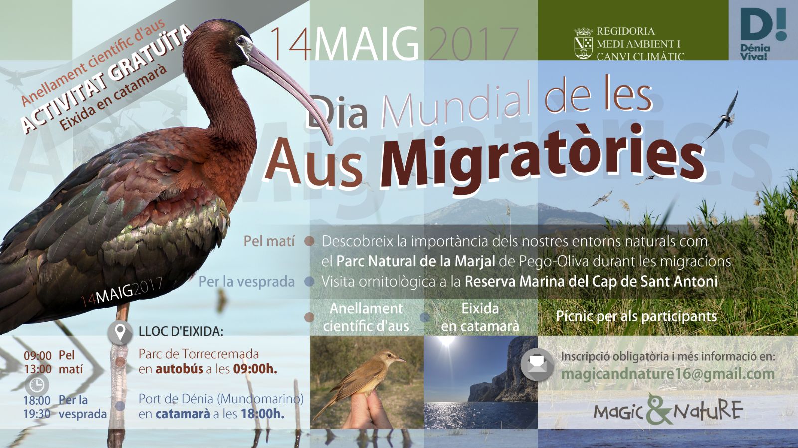 Com un any més, la Regidoria de Medi ambient i Canvi Climàtic de l'Ajuntament de Dénia ha organitzat una jornada gratuïta dedicada a les aus amb motiu del Dia Mundial de les Aus Migratòries. Serà el diumenge, 14 de maig, durant tot el dia, i comptarà amb diverses activitats destinades a tots els públics, a càrrec de l'empresa especialitzada del medi ambient, Magic&Nature.